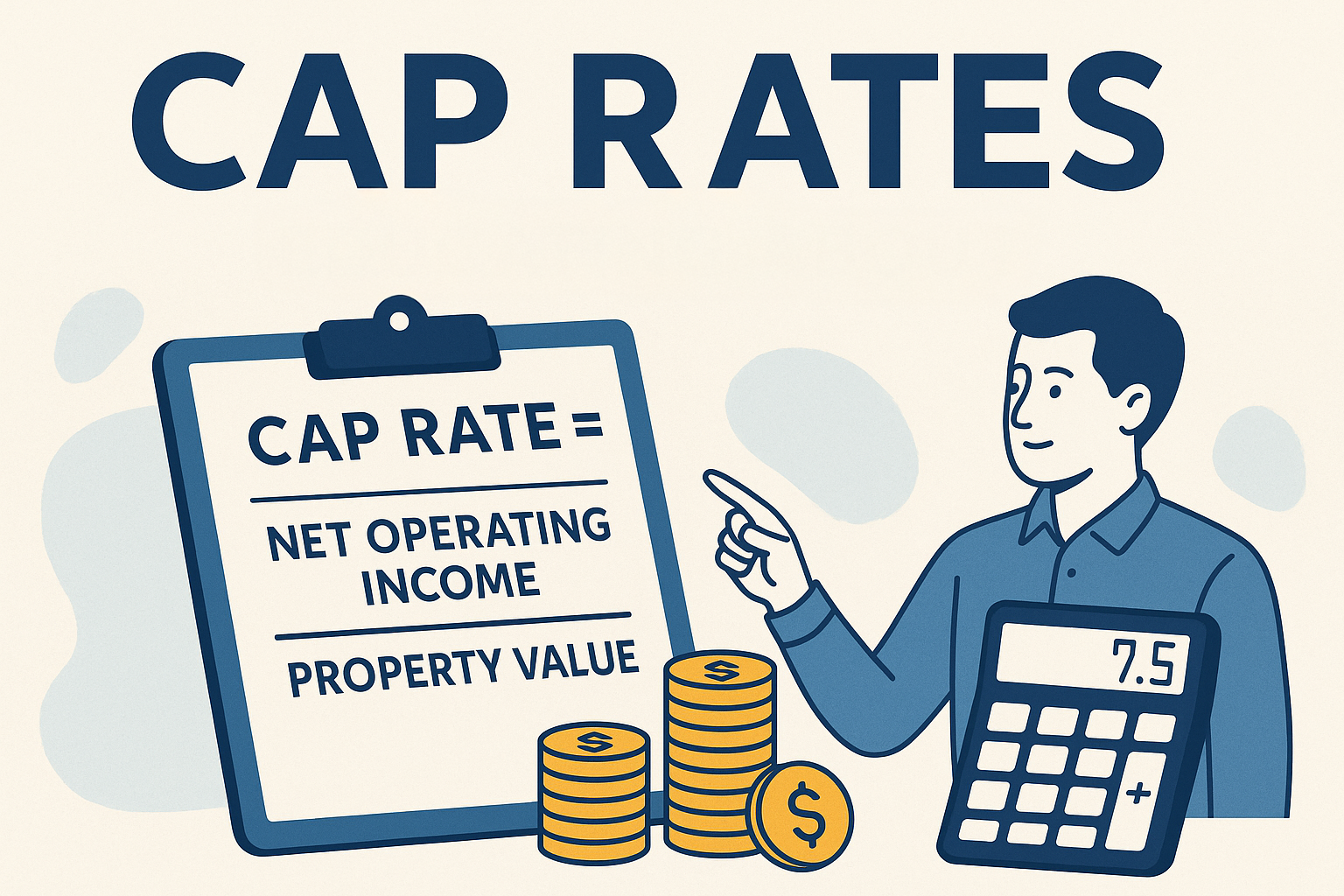 Cap rates are a critical tool in property valuation. The following formula is used to estimate a property’s value based on market-derived cap rates: