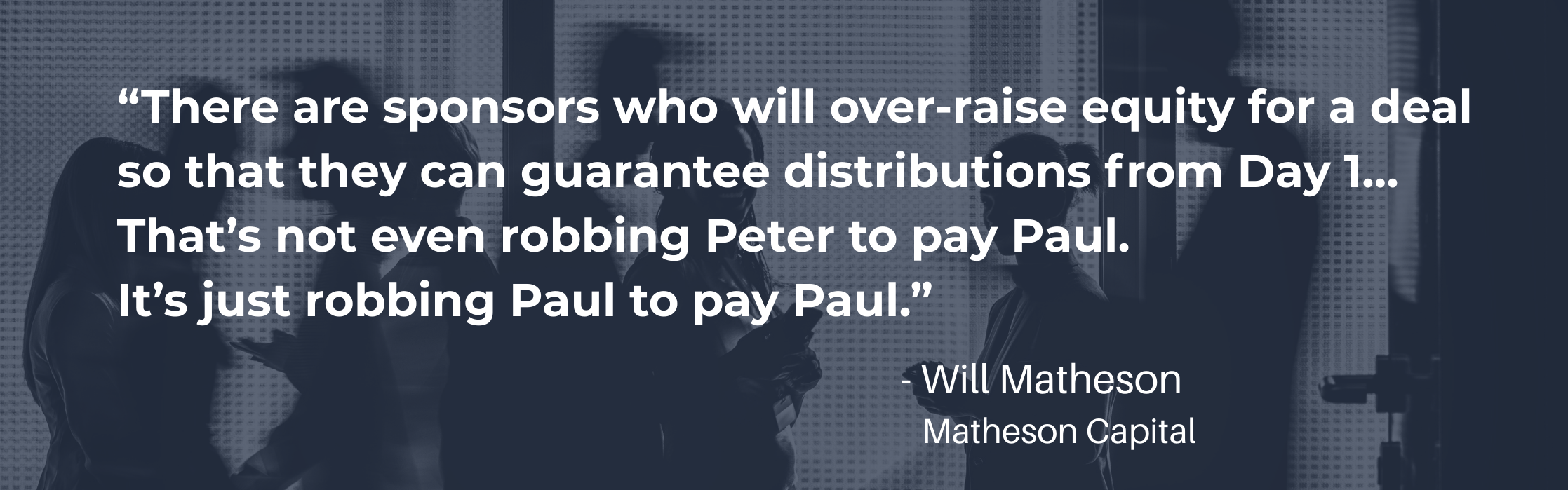 “There are sponsors who will over-raise equity for a deal so that they can guarantee distributions from Day 1…That’s not even robbing Peter to pay Paul. It’s just robbing Paul to pay Paul.”